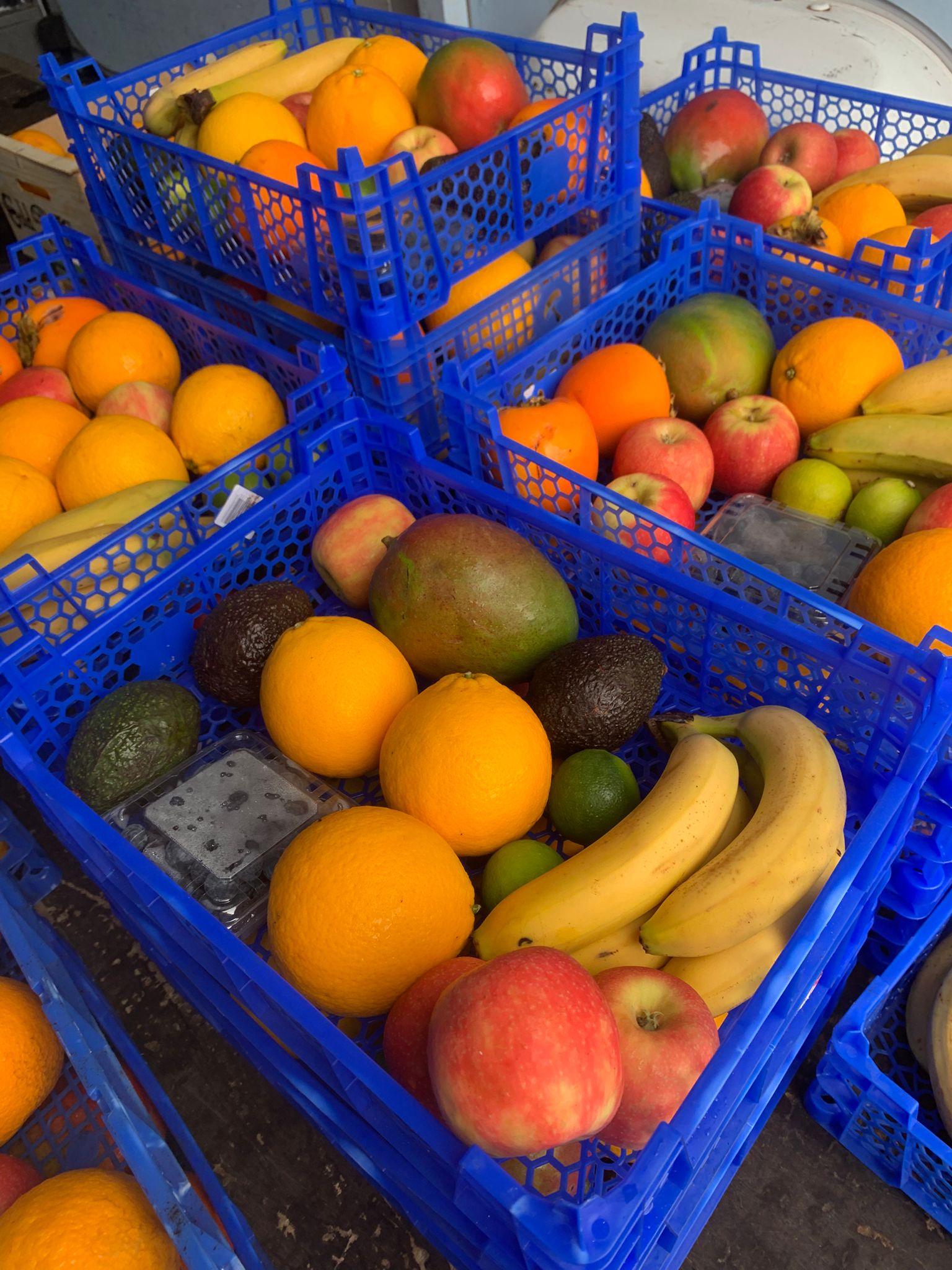 Verscheidenheid aan fruitkistjes.